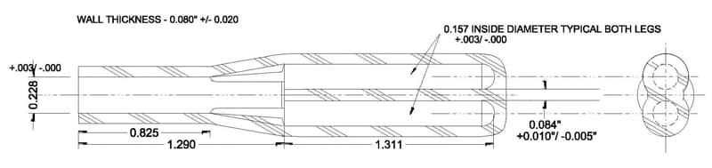 Y-connector reduces from a single port down to two narrower ports with the same diameter on all ports.